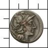 Kopf der Roma nach rechts mit Flügelhelm, im Feld links: X |